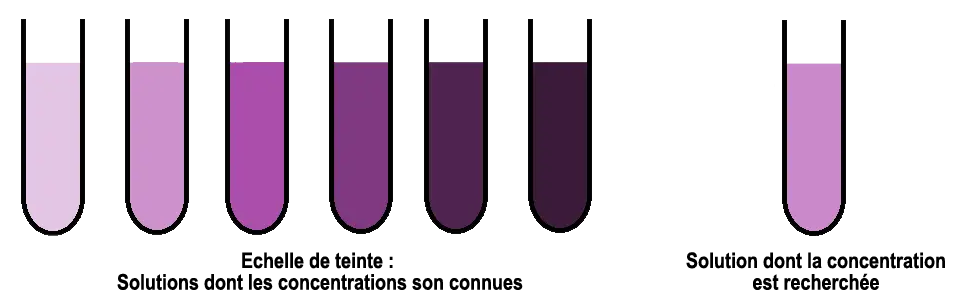 2) À comparer la coloration de la solution dont on cherche la concentration aux colorations de l'échelle de teinte.