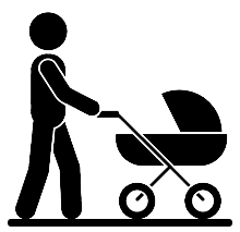 Système : a) l'homme b) la poussette