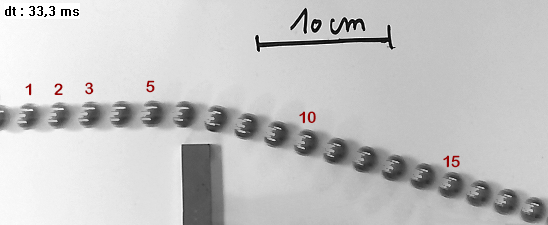 1 Numéroter les positions du centre de la bille et repérer les trois phases du mouvement.